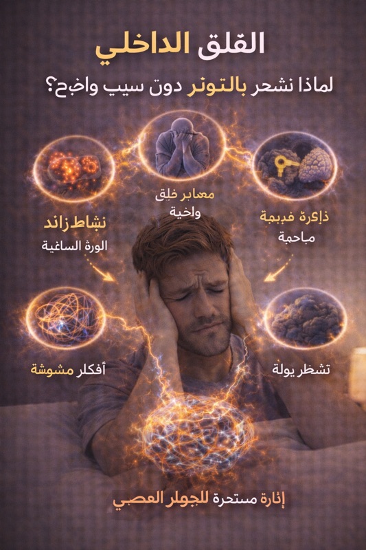 القلق الداخلي هو حالة ذهنية يكون فيها الجهاز العصبي في وضع تنبيه مزمن، حتى في غياب تهديد مباشر.